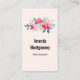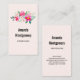 Cartes de visite à l'aquarelle fantaisiste. Un bel agencement fleuri aux couleurs rose vif et rose pastel niché parmi des feuilles et des sprigs verts.