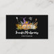 Cartes de visite à l'image mignonne d'une maison citrouille hantée avec un grand casquette de sorcières sur le dessus et fantômes et chauves-souris volant autour.