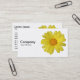 Modèle de carte de visite avec une photo isolée d'une marguerite jaune après une douche à effet pluie. Convient à une variété d'entreprises. Prêt à être customisé. Les coordonnées de l'entreprise se trouvent sur le devant avec le nom et les coordonnées au verso. Les couleurs Arrière - plans sont personnalisables.