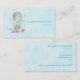 Cartes de visite avec une charmante illustration d'un bébé lapin qui roule le long d'une montgolfière décorée d'un joli ruban, de fleurs et de papillons.