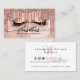 Moderne, chic, tendance Rose Gold Lashes carte de visite. Design dispose de gouttes de parties scintillant faux et ensemble de cils avec rose or faux feuille, brillant arrière - plan parties scintillant et script de typographie. Personnalisez avec votre nom sur le devant et les coordonnées sur le dos.