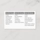 Carte de visite, taille : États-Unis : 8.9 cm x 5.1 cm, papier : Signature UV mate, coins : Carré