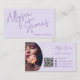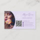 Carte De Visite Lavender Modern name script makeup hair logo qr