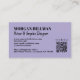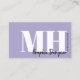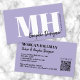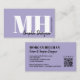 Lavender Purple Professionnel Simple Moderne Carte de visite Monogramme. Vous pouvez le changer à n'importe quelle entreprise que vous voulez : maquilleur, spécialiste du fouet, coiffeur, ou même quelque chose comme le marketing, le conseil et plus encore! Doté d'un arrière - plan violet lavande sur les deux côtés avec un mélange de polices noires et blanches en typographie classique et audacieuse associé à une police de script élégante pour les détails. L’arrière comprend de l’espace pour un code QR afin que les clients puissent se connecter rapidement à votre site Web, avec des icônes de médias sociaux affichées au-dessus - vous pouvez supprimer toutes les icônes que vous ne voulez pas garder propre et personnalisée. Un look tendance et chic, toujours professionnel et élégant. Vous pouvez changer toutes les couleurs pour en faire la façon que vous voulez. Le nom latéral sur le devant devrait fonctionner avec la plupart des initiales, mais si ce n'est pas le cas, vous pouvez jouer avec l'espacement dans l'éditeur complet.