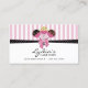 conceptions 2011 de membre de la haute société de ©. Notre conception de carte de visite lunatique de boulangerie de bruits de gâteau a trois bruits de gâteau attachés avec un arc, un ruban noir et l'arrière - plan rayé. Un carte de visite parfait pour des affaires de boulangerie ou des affaires de restauration d'événement. Personnalisez ce carte de visite de boulangerie de bruits de gâteau avec votre information. Ayez besoin de l'AIDE avec customiser ? Veuillez ne pas hésiter à me contacter avec vos conditions.