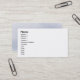 Carte de visite, taille : États-Unis : 8.9 cm x 5.1 cm, papier : Standard Semi-brillant, coins : Carré