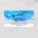 Cartes de visite de Noël avec une silhouette noire de Père Noël dans son traîneau tiré par son renne volant à travers le ciel. Croyez écrit dans une police de script tendance. L'arrière - plan est un modèle de flocon de neige glacé bleu glacé.