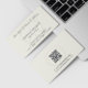 Un avocat élégant et sophistiqué au bureau de la loi modèle de carte de visite avec un arrière - plan de texture rayée crème. Accentué avec une échelle subtile de filigrane de justice, idéal pour l'utilisation par les cabinets d'avocats d'entreprise. Inclut un code QR pour plus de commodité.