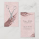 Les ciseaux de parties scintillantes d'argent de coiffeur rougissent carte de visite rose.