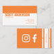 Réseau avec ces élégants cartes de visite orange et blanc présentant vos informations sur le front et les médias sociaux sur le dos. Personnalisez-vous pour être le vôtre.