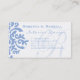 Carte De Visite Lettre bleue et blanche élégante R de damassé