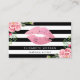 Carte De Visite Lèvres roses Floral Noir Blancs Artiste maquillage