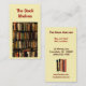 Ce carte de visite annonce une librairie pour les livres nouveaux et utilisés. L'avant comporte une composition géométrique abstraite colorée des livres. L'inverse a une autre image des livres plus tout le texte pertinent qui peut être customisé pour adapter à vos affaires personnelles.
