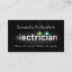 Two hanging lights (that form the dots from the letter "i") shines bright and forms a vignette over the "electrician" signage. At the top is your prestigious name with the contact details near the base of the card.