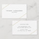 Carte de visite géométrique moderne avec deux lignes d'or, l'une en haut à gauche et l'autre en bas à droite sur un arrière - plan blanc. Au milieu sont votre nom et votre titre. Le dos contient vos coordonnées. Un design minimaliste qui reste chic et design. Ce design est idéal pour de nombreuses professions, dont un consultant, un architecte d'intérieur, un planificateur d'événements et plus encore.