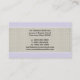 Ce carte de visite doux de point de lilas et de polka évoque la douceur de ses éléments graphiques à la palette de couleurs. L'arrière - plan est taupe avec un recouvrement de motif de point. La raison sociale, la description, et le contact principal se tiennent dans un cadre fleuri avec des enjolivures. L'inverse indique le même arrière - plan avec le reste d'information d'affaires avec l'élément cranté par pourpre encadrant au dessus et au bas. Appropriez-vous pour des affaires adaptées au secteur girly, un établissement de nourriture qui se spécialise dans des festins doux ou une boutique. Disponible dans des couleurs alternatives avec les produits assortis.