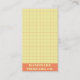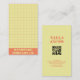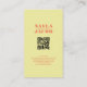 Conception carte de visite avec un motif à damiers vert citron dans une mise en page propre et minimale, avec un code QR pour un accès rapide à un site Web ou un portfolio. Convient aux marques artisanales de vêtements, boutiques ou professionnels de la création.
