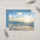 Annoncez votre maison de plage ou location de vacances avec ce carte de visite personnalisé. Il y a de la place sur l'avant pour le nom et l'emplacement de votre propriété ainsi qu'une photographie d'emplacement. Vous pouvez ajouter vos coordonnées à l'inverse. La photographie utilisée est à des fins d'illustration et vous pouvez la remplacer par une photographie de votre propre emplacement.