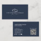 Mis à jour 2025 - modèle minimaliste de carte de visite marine-bleu avec code QR modifiable et icônes de médias sociaux modernes. Ce modèle de carte de visite classique est doté d'un logo élégant, mais simple et moderne pour aider à marquer votre entreprise immobilière ou marque personnelle. Parfait pour les agents immobiliers, constructeurs, sociétés de gestion immobilière, entrepreneurs et plus encore. La carte recto verso permet de disposer d'une grande place sur l'arrière pour vos coordonnées, ainsi que d'un code QR personnalisable pour placer votre lien de site Web pour les annonces de propriétés, les annonces, et plus encore. Cette conception fait partie d'une série de fournitures de bureau de coordination. Art et design originaux © 1201AM Design Studio | www.1201am.com