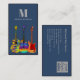 Musiciens d'enseignant de musique de guitare moderne carte de visite avec modèle de logo. Guitare acoustique psychédélique, guitare semi-acoustique et guitare électrique aux couleurs vives sur un arrière - plan bleu foncé avec monogramme personnalisé, nom, détails. Cool guitare colorée design carte de visite pour guitaristes, musiciens professionnels, artistes et professeurs de musique. OEuvre originale de l'artiste Catherine Sweetman