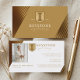 Faites une impression audacieuse et sophistiquée avec notre carte de visite de cabinet d'avocats en or de luxe, conçue pour les avocats, les groupes juridiques et les professionnels du droit qui apprécient l'élégance et le professionnalisme. Le recto présente un design de bande dorée saisissant ainsi qu'un logo de monogramme à crête de colonne, parfait pour ajouter votre monogramme et le nom de votre entreprise pour créer un look distingué et exécutif. Le verso maintient une mise en page propre et élégante, incorporant la bande dorée le long du coin. Ajoutez votre portrait professionnel, vos coordonnées, vos services et d'autres détails clés pour une présentation soignée et haut de gamme. Idéal pour les avocats, les avocats au barreau, les associés principaux, les associés seniors, les avocats associés, les conseils d'entreprise, les avocats spécialisés en droit pénal, les avocats spécialisés en droit de la famille, les avocats spécialisés en dommages corporels, les avocats spécialisés en planification successorale, les avocats spécialisés en droit immobilier, les avocats spécialisés en droit de l'immigration, les avocats spécialisés en propriété intellectuelle, les avocats spécialisés en droit fiscal, les avocats spécialisés en litige civil, les cabinets d'avoc