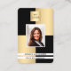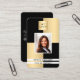 Sur le devant : blocs de couleur noir et faux or. Personnalisez et ajoutez votre logo d'entreprise, votre photo de profil, votre nom, votre titre. Retour : un arrière - plan noir. Ajoutez vos coordonnées et votre propre code QR à votre site web ou compte de médias sociaux.