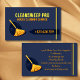 Carte de visite de nettoyage minimal moderne dans le bleu, jaune et orange, avec toutes les informations essentielles pour un service de ménage. Cette carte comporte un logo de balai nettoyant maison. Améliorez votre entreprise de services plus propres avec ce carte de visite moderne mais professionnel. Cliquez sur "Personnaliser" ajoutez vos détails et obtenez ce carte de visite unique!