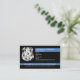 Cette conception comporte un thème de drapeau de la police avec une mince bande bleue. Customisez avec le nom, le poste et les coordonnées de l'agent d'application de la loi, du shérif, du capitaine, du chef ou de tout employé travaillant au service de police.