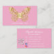 Arrière - plan rose féminine décorée d'un faux papillon doré. Personnalisez et ajoutez le logo et le texte de votre entreprise à l'avant. Retour : Modèles pour Votre nom, titre, numéro de téléphone, adresse postale et de site Web, QR-code. Parfait pour les femmes entrepreneurs, consultants, propriétaires d'entreprises.