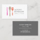 Un trio d'ustensiles de cuisine communs avec votre nom ou nom de société fait le logo parfait sur ce carte de visite personnalisable pour une entreprise de restauration, boulangerie, restaurant, chef personnel, rédacteur en chef, food truck, ou toute entreprise alimentaire. © 1201AM CREATIVE