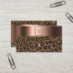 Une carte élégante et féminine aux couleurs dégradées en marron et noir. Un motif léopard aux étincelles dorées, confetti. Un faux brassard métallique en bronze devant. Ajoutez votre propre entreprise, le logo de l'entreprise. Le nom est écrit avec un script de style à la main moderne et tendance. Retour : Modèles pour Votre nom, titre, numéro de téléphone, adresse postale et site web. Lettres noires Parfait pour les femmes entrepreneurs, consultants, propriétaires d'entreprise, maquilleurs.