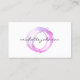 Un cercle bio peint dans les tons rose et violet devient un logo de luxe sur ce modèle de carte de visite design avec l'ajout de votre nom ou nom d'entreprise dans un traitement de type chic. Élevez votre marque avec ce design moderne qui se démarque dans une foule et laisse une impression durable. La palette de couleurs chic est idéale pour les entreprises de beauté, les maquilleurs, les coiffeurs, les coloristes, les salons à ongles et bien plus encore. Art et design by 1201AM, un studio boutique de design de marque. © 1201AM CREATIVE