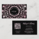 Un mandala floral rose brillant métallique complexe avec un logo et vos initiales, nom et profession sur un arrière - plan noir. À l'arrière, il y a un code qr scannable pour votre site Web. Parfait pour salon, coiffure et maquillage, beauté, professeur de yoga, boutique ou toute femme entrepreneur.