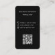 Un arrière - plan noir classique. Personnalisez et ajoutez le logo, le nom, le titre et les coordonnées de votre entreprise. Ajoutez votre URL/lien de site Web au code Qr. Avec des icônes Facebook et Instagram. Texte blanc.