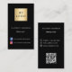 Un arrière - plan noir classique. Personnalisez et ajoutez le logo, le nom, le titre et les coordonnées de votre entreprise. Ajoutez votre URL/lien de site Web au code Qr. Avec des icônes Facebook et Instagram. Texte blanc.
