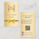 Un arrière - plan à l'allure d'or. Décoré d'un arc doré. Personnalisez et ajoutez le logo, le nom, le titre et les coordonnées de votre entreprise. Ajoutez votre URL/lien de site Web au code Qr. Avec des icônes Facebook et Instagram. Texte noir.