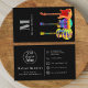 Musiciens de musique de guitare carte de visite avec logo personnalisé modèle et contact icône de médias sociaux et des détails parfaits pour les réseaux d'affaires. Guitare acoustique psychédélique, guitare semi-acoustique et guitare électrique aux couleurs vives sur un arrière - plan noir avec monogramme personnalisé, nom, détails et logo. Musiciens cool modernes design carte de visite pour guitaristes, musiciens professionnels, artistes et professeurs de musique. OEuvre originale de l'artiste Catherine Sweetman