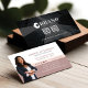 L'avant du carte de visite dispose d'un espace réservé photo découpé pour afficher votre propre photo professionnelle découpée. Une mise en page simple et professionnelle affiche bien le nom, le titre, l'adresse, les coordonnées et la poignée des médias sociaux ainsi que 6 icônes de médias sociaux. L'envers est conçu dans une mise en page simple avec un espace réservé arrière - plan photo pour afficher votre propre image arrière - plan à l'arrière de la carte avec une incrustation de photo transparente gris profond. Personnalisez avec deux de vos propres codes QR. Remarque : pour que le design ressemble à notre modèle d'échantillon, vous devez télécharger votre photo d'entreprise personnelle avec un arrière - plan transparent au format PNG. Vous pouvez customiser la taille du texte, la police, les couleurs et la couleur arrière - plan selon vos préférences personnelles.