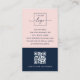 Cartes de visite verticaux modernes avec votre nom et votre titre sur le devant et champs de modèle personnalisables pour vos coordonnées, logo et code QR sur le dos. Couleurs bleu foncé et rose ou personnalisées. Vous pouvez modifier les couleurs des arrière - plans et des polices, déplacer et redimensionner les éléments à l'aide de l'outil de conception.