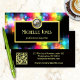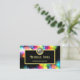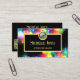 Carte de visite présentant un design coloré audacieux avec des étincelles légères sur fond noir et avec un cadre doré pour permettre l'ajout facile de texte. Le logo est facultatif, tout comme le modèle de code QR facile à personnaliser.