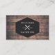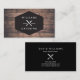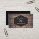 Un badge de style vintage avec une fourchette croisée et un logo de couteau associé à votre nom ou nom d'entreprise devient une marque unique sur ce design carte de visite personnalisé. Placé sur une image arrière - plan en bois brun et en détresse pour une ambiance rustique. Parfait pour les entreprises de restauration, les chefs, les restaurants, les camions de restauration, les entreprises de planification de repas et plus encore. © 1201AM