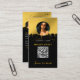 Un carte de visite de réduction de fidélité aux couleurs noir et or magnifiquement conçu qui inclut vos propres photos ainsi que votre nom, titre, code QR et poignée de médias sociaux. Parfait pour les petites entreprises. Customisez simplement et faites-le vous-même !