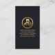 Un projecteur doré éclaire la couverture bleu foncé et met en valeur votre nom prestigieux et votre titre professionnel avec le logo d'un chauffeur en or que vous pouvez utiliser. Les coordonnées se trouvent près de la base de la carte. Le logo or est en haut, suivi de votre nom prestigieux, de vos coordonnées et d'une option de légende de slogan pour faire connaître vos services. Les lettres ici sont en faux or. Une grande carte design pour les chauffeurs ou tous ceux qui aiment le scintillement d'or.