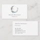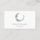 Cartes de visite avec une illustration mystique. Une lune bleu foncé avec un contour élégant en cercle mince et des fleurs blanches fleurissent le long de ses bords.