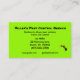 L'interprétation abstraite d'une araignée radioactive décrite sur ce carte de visite annonce un service de lutte contre les parasites. Il se tient sur la carte en couleurs de vert et noir au néon. Le texte spécifique est sur l'inverse avec une petite fourmi. Tout le texte peut être customisé pour adapter à vos affaires particulières.
