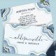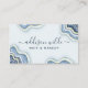 Carte de visite Luxe Chic Agate Geode Pailletée Bleue. Icônes de réseaux sociaux au verso. Parfaite pour les artistes en maquillage, les coiffeurs, les cosmétologues, et plus encore !