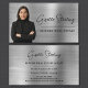 Faites la promotion de votre marque immobilière de luxe avec cet élégant carte de visite de script argent faux métallique. La typographie de script raffinée et la finition faux-métallique évoquent le raffinement et la confiance, parfait pour les agents et courtiers haut de gamme. Une mise en page propre assure que votre nom, titre et coordonnées se démarquent magnifiquement, prêt pour l'impression professionnelle.
