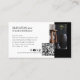 Make a lasting first impression with our elegant and minimal business card. The front features a striking photo offset on a black background, paired with your name and job title for a sleek, professional look. The reverse side includes space for a second photo alongside a modern black-and-white layout, with placeholders for contact details, social media handles, icons, and a QR code, creating a fully connected and functional design.