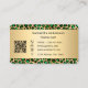 Carte De Visite Luxury Emerald Green Gold Leopard Print QR Code
