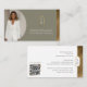 Present your brand with sophistication using our Luxury Modern Arch Monogram Photo Business Card Template. This clean and contemporary design features a customizable business photo on the front, enhanced with a sleek arch-shape element that frames an elegant, minimal monogram crest with refined gold accents. Your name and job title are highlighted in a modern, upscale layout, complemented by a faux gold strip along the bottom for an extra touch of luxury. The reverse side maintains a clean and minimal aesthetic, showcasing the coordinating arch monogram crest, neatly organized contact details, and a customizable QR code to help clients connect with ease. Perfect for professionals seeking a polished, high-end look—ideal for luxury real estate agents, financial advisors, law firms, brokers, consultants, and more. Design and layout by © Moodthology Papery.